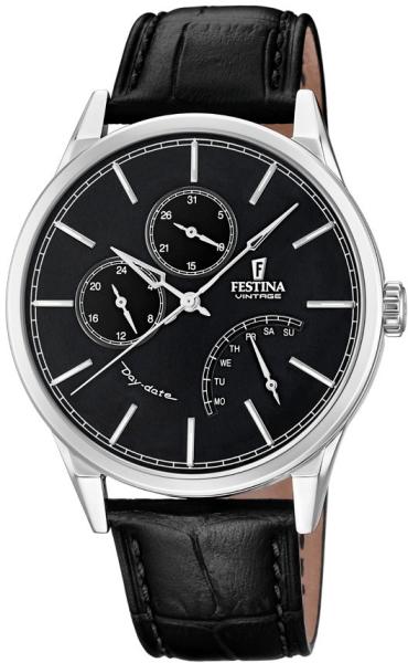 Az elegáns, időtlen megjelenésű Festina órák ideális kiegészítői mind a társasági, mind az alkalmi öltözékeknek. Ez a kerek, acél tokkal ellátott karóra kvarc (elemmel működő) óraművel működik, dátum és a hét napja kijelzéssel. A fekete számlapon az időt ezüstszínű arab számok jelzik. A számlapot lapos akrilüveg borítja. A 30 M vízállóság biztosítja az ó