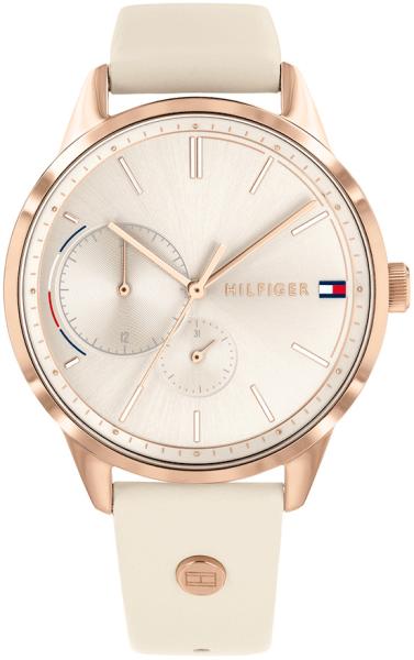Divat Tommy Hilfiger karórák a Brooke kollekcióból. Ideális kiegészítők nőknek , akik előnyben részesítik az analóg és kerek alakú karórákat. A belül ellenálló 8 mm magas tokban, melyet minőségi acél alkot , megbízható elemes (quartz) gépezetet talál, mely 38 mm átmérőjű számlapot működtet. A számlapot ellenálló ásványi üveg véd. A tok rózsaarany, számlap
