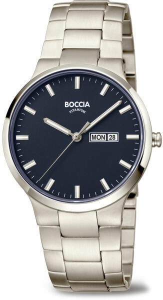Márka: BOCCIA TITANIUM | Modell: 3649-02 | Garancia: 2 évek | Szín: kék | Szín: ezüst | Tok színe: ezüst árnyalat | Tok anyaga: titán | Táplálás: elem | Szíj anyaga: titán | Funkciók: Dátum – a hónap napja | Funkciók: Dátum – a hét napja | Vízálloság: 50M/5ATM | Üveg: zafír | Forma: kerek | Számjegyek a számlapon: indexek | Rendeltetés: férfi | Minimális kerület