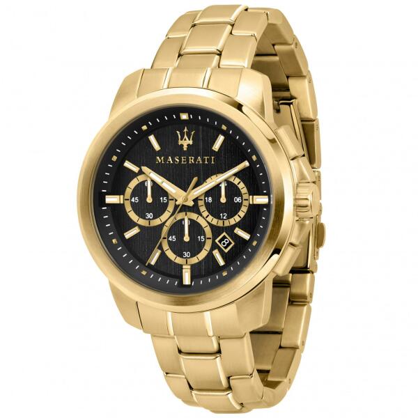 Maserati Successo férfi karóra R8873621013 egy kerek formájú, arany színű nemesacél óratokkal, fekete analóg számlappal és arany nemesacél szíjjal rendelkező sportos Maserati karóra. Az óra elemmel működő kvarc szerkezettel és 5 ATM vízállósággal rendelkezik, tehát mérsékelten vízálló. Ez a fantasztikus óra most 95900 áron megrendelhető webshopunkban, melyre 24 hó