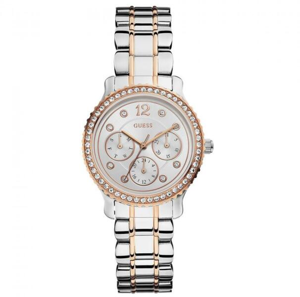 Jellemzők: Márka - Guess Számlap színe - ezüst A tok színe - arany-ezüst Mozgás - akkumulátor Vízálló - 50 m Üveg - ásvány Cél – női Típus - tű Súly - 100 g Méretek - 35x40x10 Garancia - 2 év