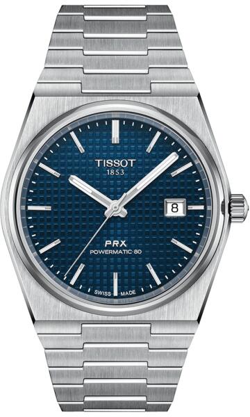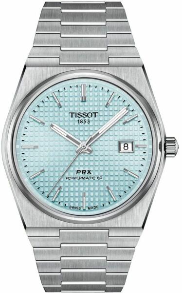 Fedezze fel a Tissot PRX Automatic Powermatic 80 Ice Blue férfi karórát, mely a '70-es évek autentikus stílusát ötvözi modern technológiával. A Tissot PRX Automatic Powermatic 80 férfi karóra a letisztult, vékony formatervezésével és autentikus '70-es évek stílusával lenyűgöz. Az óra 316L rozsdamentes acél tokkal és szíjjal rendelkezik, karcálló zafír üveggel és jégk