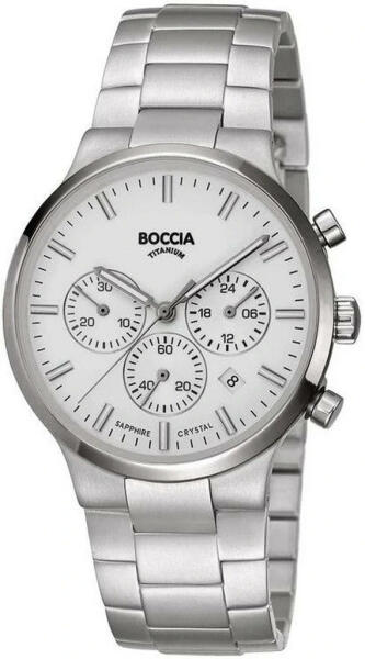 Márka: BOCCIA TITANIUM | Modell: 3746-01 | Garancia: 2 évek | Szín: ezüst | Tok színe: ezüst árnyalat | Tok anyaga: titán | Táplálás: elem | Szíj anyaga: titán | Funkciók: Dátum – a hónap napja | Funkciók: Stopper | Vízálloság: 50M/5ATM | Üveg: zafír | Forma: kerek | Számjegyek a számlapon: indexek | Rendeltetés: férfi | Termék típusa: karórák | Típus: analóg | Sz