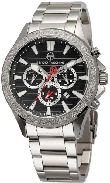 Jellemzői: Tok - Rozsdamentes acél Vízállóság - 5 ATM Szíj - Rozsdamentes acél Üveg - Ásványi Méretek: 43 x 12 mm Meghajtás - quartz/Elem Óra formája - Kerek Számlap színe - Fekete Típus - Sportos Állapot - Új