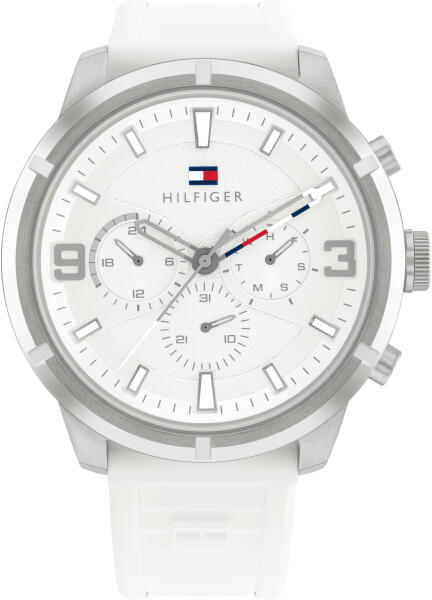- Tok alakja: kerek - Tok anyaga: acél - Szíj anyaga: műanyag - Vízállóság: WR. 50M (5ATM) - cseppálló, felszíni úszáshoz alkalmas - Üveg: ásványi (edzett, rendkívül ellenálló a törésre, nehéz megkarcolni). - Mechanizmus: kvarc, elemmel működik - Kronográf és dátum kijelző. - Órajelzések. - Számok: arab számok - Gyári csomagolásban. - Öv szélessége: 24 mm. - To