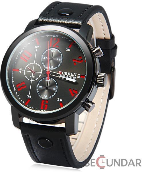 Elegáns Curren karóra fekete számlappal, fekete valódi bőrszíjas, fekete színű tokkal, sportos és elegáns öltözethez. TULAJDONSÁGOKrozsdamentes acél tok ásványi kristályüveg quartz szerkezet a chronograph csak díszMÉRETEKház szélessége: 4,6 cm ház magassága: 1,2 cm szíj hossza: 25,5 cm szíj szélessége: 2,2 cm