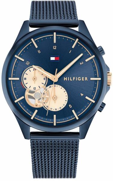 Divat Tommy Hilfiger karórák a Denim kollekcióból. Ideális kiegészítők férfiaknak , akik előnyben részesítik az analóg és kerek alakú karórákat. A belül ellenálló 11 mm magas tokban, melyet minőségi műanyag alkot , megbízható elemes (quartz) gépezetet talál, mely 44 mm átmérőjű számlapot működtet. A számlapot ellenálló ásványi üveg véd. A tok fekete, száml
