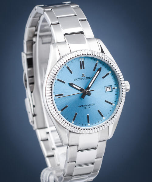50 years Anniversary Collection Ezüst színű 100% rozsdamentes acél karóra. Ezüst színű óratok "fluted" bordázott lünettával. Ezüst színű foszforeszkáló mutatók és rakott indexek. Zománckék színű "sunburst" hatású számlap, dátum kijelzéssel. Az óra üvege "crystexglass". (Rendkívül nehezen karcolódó keményített kristályüveg!) Megbízható japán quartz szerkezet