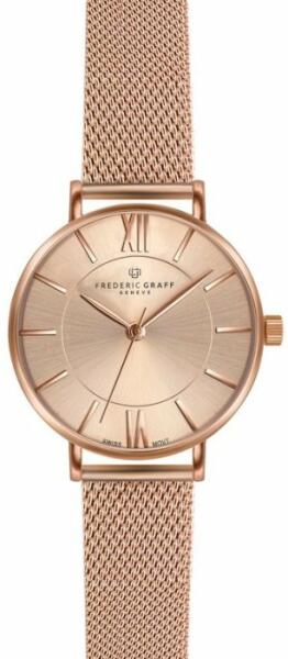 A Frederic Graff óra olyan hölgyeknek van tervezve, akik szívesen kényeztetik magukat fényűző kiegészítőkkel. A rosegold számlapot csak elegáns mutatók és egyszerű indexek díszítik. Az óra belsejében precíz svájci Ronda gépezet található.