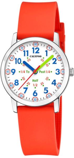 Okozzon gyermekének örömet és vásároljon neki csodaszép Calypso márkájú órát. Számlapját jellegzetes mutatók díszítik, valamint számok és angol nyelvű segédeszközök a pontos időmeghatározáshoz. A tok nemesacélból készült. A karórát kellemes piros szilikon szíj segítségével csatolhatja csuklójára.
