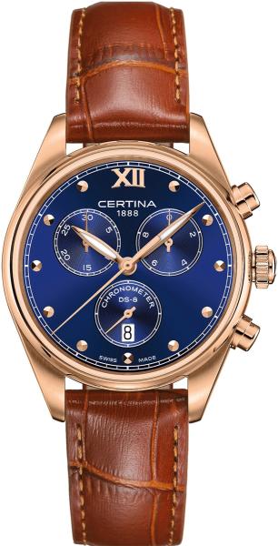 Márka: CERTINA | Kollekció: DS 8 | Modell: 0332343604801 | Szín: barna | Szín: kék | Tok színe: rózsaarany | Tok anyaga: nemesacél | Táplálás: elem | Szíj anyaga: bőr | Funkciók: COSC tanúsítvány | Funkciók: Dátum – a hónap napja | Funkciók: DoubleSecurity DS rendszer | Funkciók: Stopper 1/1 másodperc - 30 perc | Karóra/számlap átmérője: 35 mm | Vastagság: 10 mm | V
