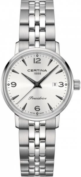 Certina DS CAIMANO Lady női karóra C035.210. 11.037. 00 egy kerek formájú, ezüst színű nemesacél óratokkal, ezüst analóg számlappal és ezüst nemesacél szíjjal rendelkező divatos Certina karóra. Az óra elemmel működő kvarc szerkezettel és 10 ATM vízállósággal rendelkezik, tehát fürdésre, úszásra használható. Ez a fantasztikus óra most 165900 áron megrendelhető w