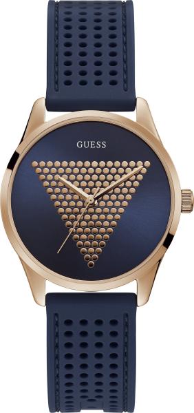 Klasszikus Guess karórák a Mini Imprint kollekcióból. Ideális kiegészítők nőknek , akik előnyben részesítik az analóg és kerek alakú karórákat. A belül ellenálló 9 mm magas tokban, melyet minőségi acél alkot , megbízható elemes (quartz) gépezetet talál, mely 36 mm átmérőjű számlapot működtet. A számlapot ellenálló ásványi üveg véd. A tok rózsaarany, száml