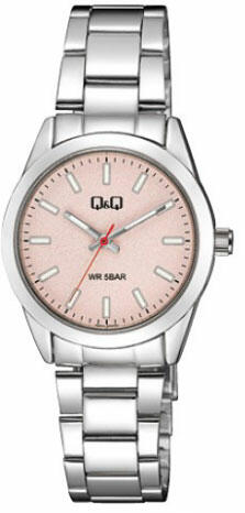 Márka: Q&Q | Kollekció: STANDART | Modell: Q82A-005PY | Garancia: 2 évek | Szín: rózsaszín | Szín: ezüst | Tok színe: ezüst árnyalat | Táplálás: elem | Szíj anyaga: nemesacél | Vízálloság: 50M/5ATM | Üveg: ásványi | Forma: kerek | Csatolás típusa: zsanérzár | Számjegyek a számlapon: indexek | Rendeltetés: női | Minimális kerület: 14 | Termék típusa: karórák