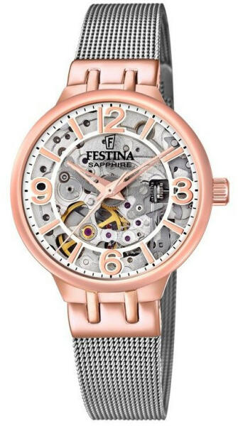 Festina 20581/1 női karóra automata óraművel. Nem lehet nem megemlíteni különösen eredeti kivitelezésüket és elegáns megjelenésüket. A szürke fémpántot kiegészíti az óraház gyönyörű, gazdag rózsaarany színe. Ez az egyedülálló színkombináció ragyogóan illeszkedik a precízen megmunkált számlaphoz. A kijelző a legapróbb részletekig kidolgozott. Erős, tartós za