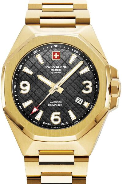 Eredeti Doboz, Pontos óraszerkezet , Kiváló minőségű anyagok, kifinomult tervezés 2év Magyar jótállás, 15 napos pénzvisszafizetés gyártó:Swiss Alpine Military by GrovanaModellNr :7005.1117SAMehemalige Listaár:*:569,00 Euroszámlap:analóg, szín: feketeTechnik:svájci ÓraszerkezetHáz:Rozsdamentes acél tok goldfarben, átmérő : ca. 4,2 cm, vastagság: ca. 1,15 cm, Súly: ca, 17