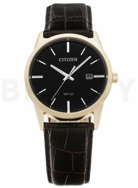Klasszikus Citizen karórák a Sports kollekcióból. Ideális kiegészítők férfiaknak, akik előnyben részesítik az analóg és kerek alakú karórákat. A belül ellenálló 8 mm magas tokban, melyet minőségi acél alkot, megbízható elemes (quartz) gépezetet talál, mely 39 mm átmérőjű számlapot működtet. A számlapot ellenálló ásványi üveg véd. A tok arany, számlap feket