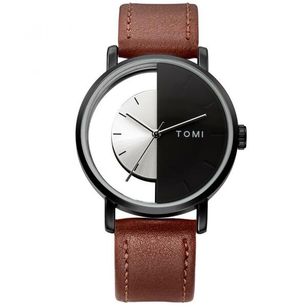 TOMI Karóra Különleges TOMI karóra uraknak. A karóra modern kialakítása miatt nem csak hétköznapokon viselhető, hanem különleges alkalmakkor is. A karóra része a teljes naptár, antimagnetikus és ellenáll a rázkódásnak. Rozsdamentes acélból készült. Ajándékdobozban szállítjuk. Tulajdonságok: A karóra hossza: 24cm Az óratok mérete: 4cm x 4cm Szín: Barna/Fekete Anyaga