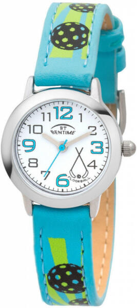 Kedveli fia, unokája, vagy unokaöccse a floorball-t? Akkor a kis gyermekének meg kellene vásárolnia a kedvelt Bentime márka műhelyéből származó órát. Floorball labdákat talál a kék szíjon. A jellegzetes számokkal és mutatókkal ellátott világos számlap tökéletesen bebiztosítja a jó olvashatóságot.