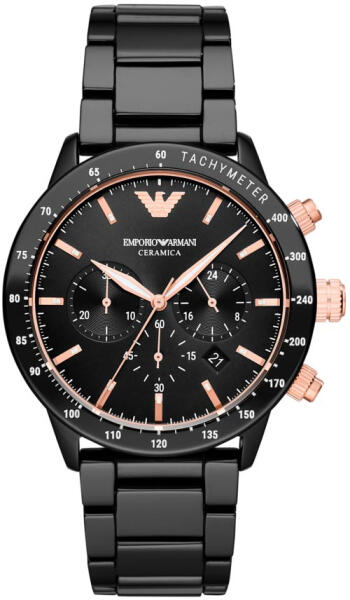 Termék leírás: Mechanizmus típusa: kvarc Üveg: Ásványi Vízállóság: 3 ATM Tok kialakítása: Kerámia Szíj típusa: kerámia Fekete szín Rögzítési mód: szabadalom Tok vastagsága: 10 mm Szíj szélessége: 22 mm Tok mérete: 43 mm Gyártó: Armani Exchange Modell: Mario AR70002