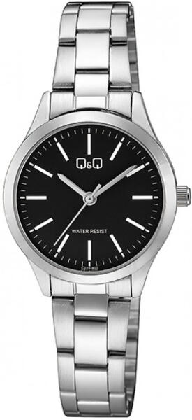 Viselhet formális ruhát, vagy szabadidős pólót a Q&Q márka műhelyéből származó óra mindig tökéletesíti megjelenését. A fekete számlapja első pillantásra felkelti a figyelmet a keskeny mutatókkal és egyszerű indexekkel, amelyek bebiztosítják a jó olvashatóságot. A Q&Q óra nem okoz csalódást.