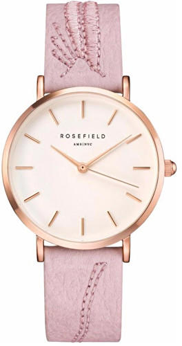 Klasszikus Rosefield karórák a The City Bloom kollekcióból. Ideális kiegészítők nőknek , akik előnyben részesítik az analóg és kerek alakú karórákat. A belül ellenálló 8 mm magas tokban, melyet minőségi acél alkot , megbízható elemes (quartz) gépezetet talál, mely 33 mm átmérőjű számlapot működtet. A számlapot ellenálló ásványi üveg véd. A tok rózsaarany,