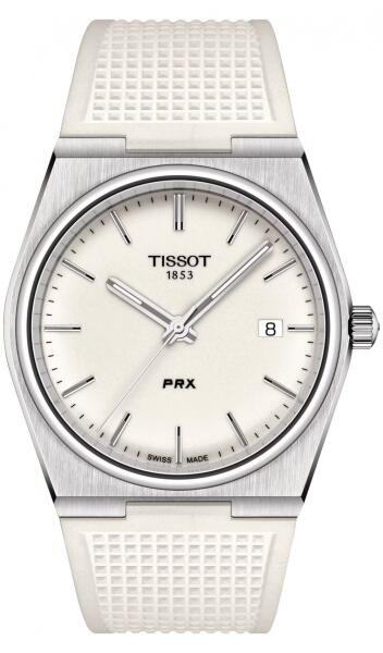 Tissot PRX férfi karóra T137.410. 17.011. 00 egy hordó formájú, ezüst színű nemesacél óratokkal, fehér analóg számlappal és fehér szilikon szíjjal rendelkező divatos Tissot karóra. Az óra elemmel működő kvarc szerkezettel és 10 ATM vízállósággal rendelkezik, tehát fürdésre, úszásra használható. Ez a fantasztikus óra most 155900 áron megrendelhető webshopunkban,