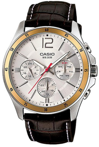 LeírásFunkciók: óra, perc, másodperc, dátum, nap, 24 órás alkijelzőMechanika: japán kvarcRészletek: világító mutatók, csatos rögzítésVízállóság: 5 ATMKijelző: analógKijelző színe: ezüstszínSzíj színe: barnaTok színe: ezüstszínÜveg összetétele: ásványi üvegTok összetétele: rozsdamentes acélSzíj összetétele: bőrTok mérete (mm): 43,5Tok vastagsága (mm):