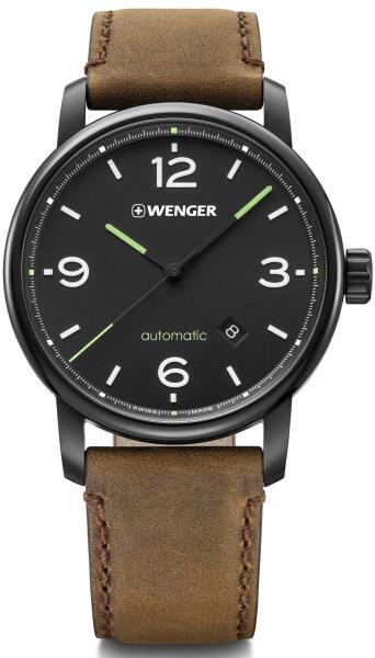 Wenger Urban Metropolitan Automatic férfi karóra. Svájci 26 köves automata szerkezet. Egyértelmű számlap, amely dátumjelzőt tartalmaz. Vízállósága 100 m Fényvisszaverő zafír üveg Nemescél óratok Bőr óraszíj 3 év nemzetközi garancia