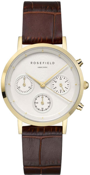 Márka: ROSEFIELD | Kollekció: THE GABBY | Modell: NCDBG-N93 | Szín: barna | Tok színe: arany árnyalat | Táplálás: elem | Szíj anyaga: bőr | Funkciók: 24-órás számlap | Funkciók: Stopper 1/1 másodperc - 30 perc | Vízálloság: 30M/3ATM | Üveg: ásványi | Forma: kerek | Csatolás típusa: standard felcsatolás | Rendeltetés: női | Minimális kerület: 15 | Termék típusa: karó