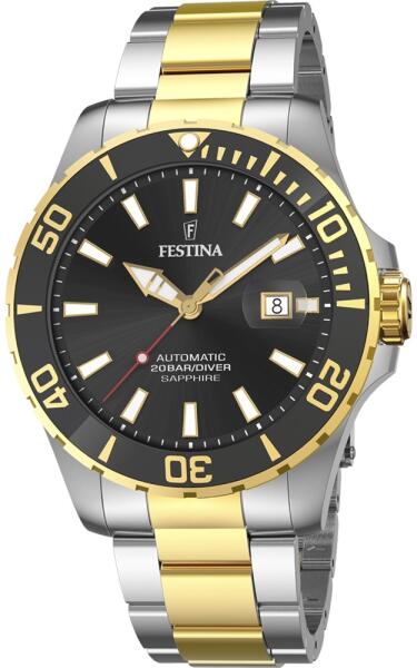 A minimalista megjelenésű, időtálló Festina órák ideális kiegészítői mind a társasági, mind az alkalmi öltözékeknek. Ez a kerek, acél házzal ellátott óra mechanikus mechanizmussal működik, automata felhúzással, lünettéval és dátumkijelzővel. A fekete számlapon az indexek mutatják az időt. A számlapot lapos zafírkristályborítja. A 200 M vízállóság biztosítja