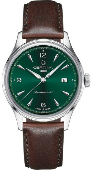 Certina DS Powermatic 80 Nivachron férfi karóra C038.407. 16.097. 00 egy kerek formájú, ezüst színű nemesacél óratokkal, zöld analóg számlappal és barna valódi bőr szíjjal rendelkező divatos Certina karóra. Az óra mechanikus (automata) szerkezettel és 10 ATM vízállósággal rendelkezik, tehát fürdésre, úszásra használható. Ez a fantasztikus óra most 293930 áron megre