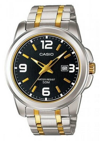 Gyártó: Casio Modell: MTP-1314SG Tulajdonságok: Stílus: Hétköznapi Mechanizmus: Quartz Készülékház:Kerek Készülékház anyaga: Sárgaréz Tok színe: Ezüstszürke Üveg anyaga: Ásványi kristályüveg Kijelző: Analóg Vízálló: 5 m Szíj/karperec anyaga: Rozsdamentes acél Funkciók: Dátum kijelző Méret: 50 mm x 9 mm x 44.9 mm Tömeg: 126 g
