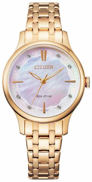 Elegáns elemekkel ellátott, aranyszínű, bájos dizájn - ez a Citizen EM0893-87Y női karóra. Az óra népszerű arany színe már az első alkalomtól kezdve eleganciát kölcsönöz az egész öltözéknek. A dizájn stílusa az egész órán egységes, és a számlap is ugyanabban a fémszínben pompázik. Ezt a kecses dizájnt tovább egészítik ki a számlapon található gyönyörű kr