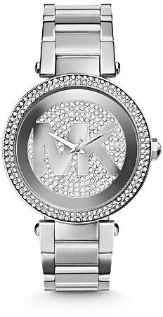 Divat Micha el Kors karórák a Parker kollekcióból. Ideális kiegészítők nőknek , akik előnyben részesítik az analóg és kerek alakú karórákat. A belül ellenálló 11 mm magas tokban, melyet minőségi acél alkot , megbízható elemes (quartz) gépezetet talál, mely 39 mm átmérőjű számlapot működtet. A számlapot ellenálló ásványi üveg véd. A tok ezüst, számlap ezü
