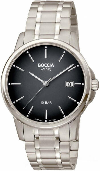 Márka: BOCCIA TITANIUM | Modell: 3633-07 | Garancia: 2 évek | Szín: fekete | Szín: ezüst | Tok színe: ezüst árnyalat | Tok anyaga: titán | Táplálás: elem | Szíj anyaga: titán | Funkciók: Dátum – a hónap napja | Vízálloság: 100M/10ATM | Üveg: zafír | Forma: kerek | Számjegyek a számlapon: indexek | Rendeltetés: férfi | Termék típusa: karórák | Típus: analóg | Szíj