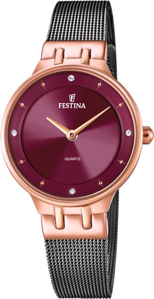 Tökéletes ajándékot keresel a párodnak, vagy egy újabb luxusdarabbal szeretnéd kiegészíteni a kiegészítőidet? Ez az egyedi óra első látásra elvarázsolja Önt. A Festina 20599/2 női karórát gyönyörű rózsaarany/rózsaszínarany szín jellemzi, amely nagyon népszerű a divatkiegészítők terén. A bordó kijelző a minimalista megjelenést hangsúlyozza, a számlapon a szám