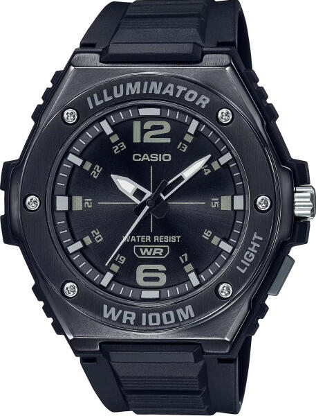 MWA-100H-1AVEF Casio Collection férfi analóg karóra. Referenciaszám: MWA-100H-1AVEF Kinek: férfi karóraStílus: sportosSzíj anyaga: műanyag. A karóra szíja tartós, és könnyű műanyagból készült. Tok anyaga: Az óra tokja könnyű, de tartós műanyagból készül. Szerkezet: analógVízállóság: 100 m, a karóra 10 Bar nyomásig ellenáll a víz nyomásának. Megfelel az ISO 228