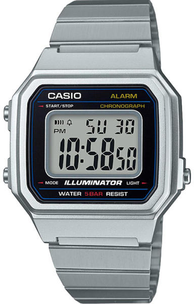 Casio Retro fémszíjas férfi karóra. Referenciaszám: B650WD-1AEF Súly: 63 gramm Méret: 43,1 x 41,2 x 10,5 mm Szíj típus: Rozsdamentes nemesacél fémcsat, mely a legtartósabb kivitelnek számít. A rozsdamentes nemesacél szíj a kéz izaddságának ellen áll. Tok típus: A karóra tokozása plasztik műanyagból készült, könnyű súlya és variálhatósága miatt kedvelt viselet. Sze
