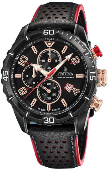 Ha praktikus, mégis stílusos divatdarabot keres, nézze meg a svájci Festina márka karóráinak választékát. Ez a sportos férfi karóra az öltözködésed szerves részévé válik. A kiváló minőségű bőrszíj piros cérnával van összevarrva. A tok acélból készült, PVD bevonattal. A részletes kijelző garantáltan nem marad észrevétlen. Három kronográfnak, valamint a néps