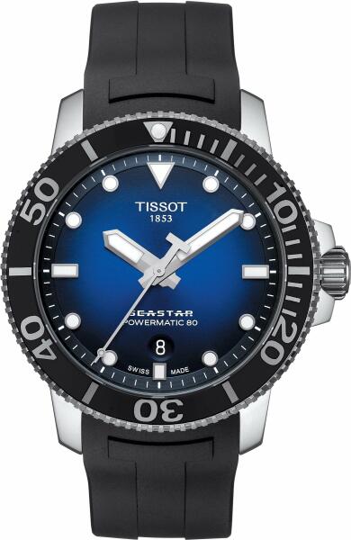Tissot Seastar 1000 Powermatic 80 férfi karóra T120.407. 17.041. 00 egy kerek formájú, ezüst színű nemesacél óratokkal, kék analóg számlappal és fekete szilikon szíjjal rendelkező sportos Tissot karóra. Az óra mechanikus (automata) szerkezettel és 30 ATM vízállósággal rendelkezik, tehát búvárkodásra megfelelő. Ez a fantasztikus óra most 349900 áron megrendelhető websh
