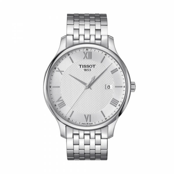 Márka: TISSOT | Kollekció: TRADITION | Modell: 0636101103800 | Garancia: 2 évek | Szín: ezüst | Tok színe: ezüst árnyalat | Tok anyaga: nemesacél | Táplálás: elem | Szíj anyaga: nemesacél | Funkciók: Dátum kijelző | Vízálloság: 30M/3ATM | Üveg: zafír | Forma: kerek | Számjegyek a számlapon: római | Számjegyek a számlapon: indexek | Rendeltetés: férfi | Termék típusa: