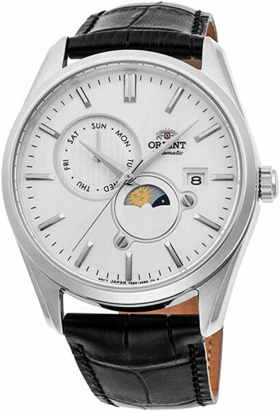 Orient Sun and Moon férfi karóra típusa RAAK0310S10B. Az ORIENT Japán első számú automata óra gyártója. A cég a Seiko csoport tagja, azonban önálló egységként működik, saját történelemmel és az automata karóra gyártásban saját innovációkkal rendelkezik. Az ORIENT egyike azon kevés karóra márkának, amik saját maguk gyártják automata szerkezeteiket. Kimagasló megb