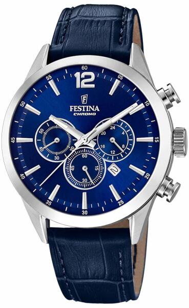 Sportóra az aktív férfiaknak. A Festina 20542/2 férfi karóra sötétkék színben első látásra elnyeri tetszését. A kék és az ezüst kombinációja ragyogóan csillog a férfi csuklóján. A Festina Chrono modell kétségtelenül aktív szellemet rejt, amit a kijelzőn látható népszerű kronográfok is bizonyítanak. A bőrszíj könnyen beállítható a kívánt hosszúságra. Fino