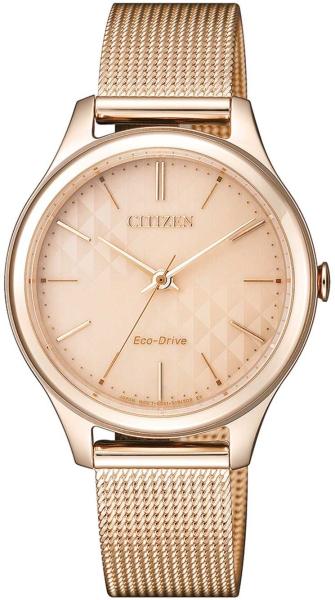 Fedezze fel a Citizen EM0503-83X női Eco-Drive karórát, rózsaarany színű számlappal és milánói szíjjal. A Citizen EM0503-83X női karóra elegáns és modern megjelenésével kiemelkedik. Az óra rozsdamentes acél tokkal és milánói szíjjal, kristályüveggel és rózsaarany színű számlappal rendelkezik. Az óra a kaliber E031 Eco-Drive szerkezettel működik, amely 180 napos ene