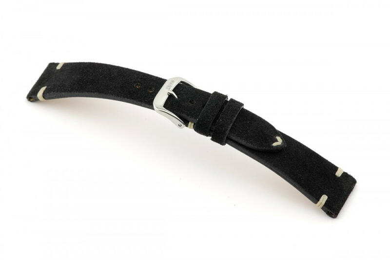 Puha, borjúbőrből készült, aligátor mintával nyomott, enyhén párnázott óraszíj a Herzog márkától. A szíj 3 mm vastag.