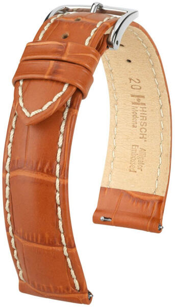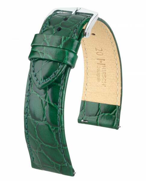 Lenyűgöző a diszkrét dizájnjával és különleges, elegáns fényével. Tartós borjúbőrből készült, karakteres krokodibőr mintázatú dombornyomással. Gyönyörű Hirsch Traditional Deisgn csattal és gyorszáras rugósfüllel ellátva. Használja letölthetőméretezési segédletünket