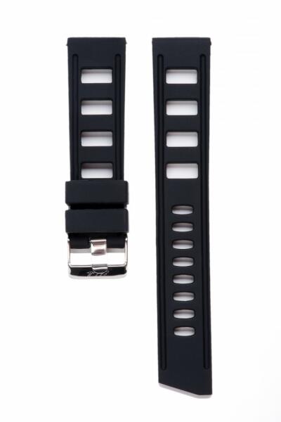Anyaga: szilikon Hossza: 125x80mm Szélessége: 20mm Színe: fekete (piros varrás) Csat anyaga: acél Használja letölthetőméretezési segédletünket !