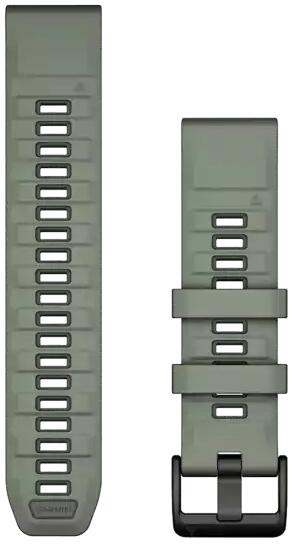 Fűzfazöld színű szilikon óraszíj fekete csattal és sötétszürke belső résszel, . A szíj gyorscserés, és két bujtató tartozik hozzá.
