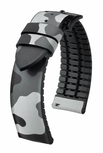A Hirsch John a mi divatos terepszínű óraszíjunk túrázáshoz, futáshoz, hegymászáshoz. John mindig a megfelelő társ útközben. Hirsch Prémium Kaucskból készült, kiváló minőségű, robosztus anyag. Jellegzetes kialakítás, egyedi megjelenés, vízálló kialakítás. Hirsch John rozsdamentes csattal és gyorszáras rugósfüllel ellátva. Használja letölthetőméretezési seg